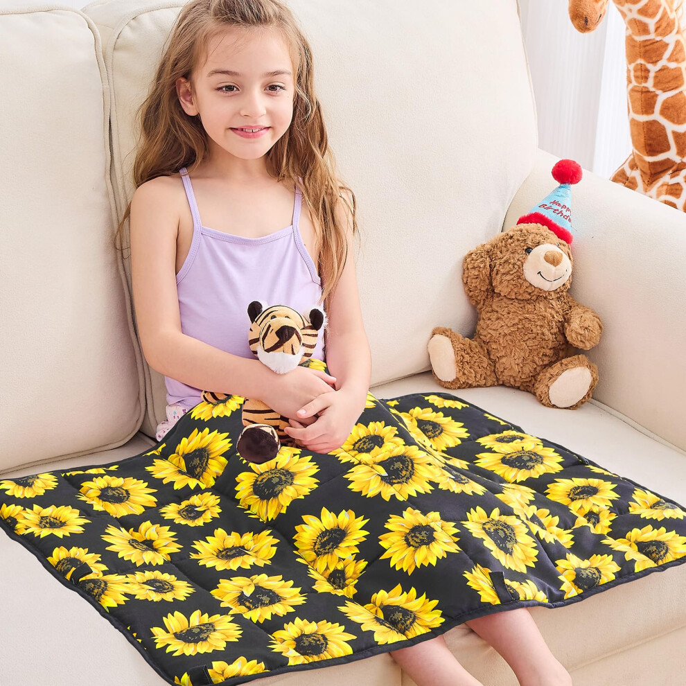 yescool Weighted Lap Blanket 2 Pounds Cooling Weighted Lap Pad Sunflower Small Weighted Blanket Weighted Throw Blanket Gift for Travel Indoor Outdo