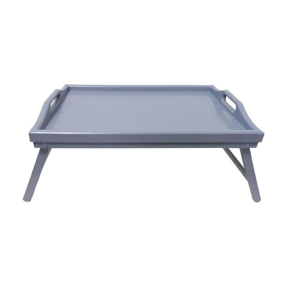 Bamboo Wooden Breakfast Serving Lap Tray Bed Table With Folding Legs (Grey)