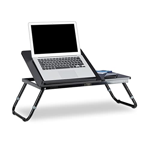 Relaxdays laptop table, lap desk, bed table, bed tray, notebook table, side table, laptop WTH 75 cm x 35 cm x 40 cm, wood, black, with reading flap, height-adjustable, foldable