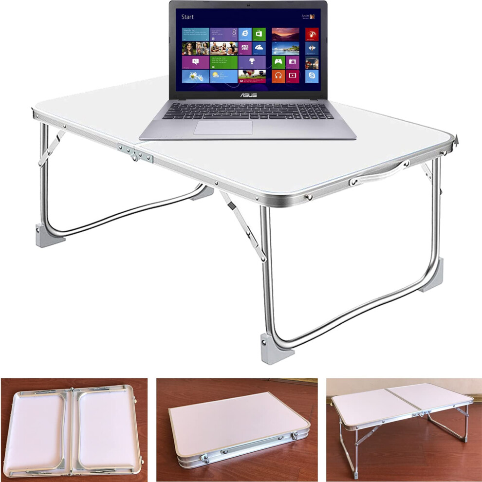 Folding Laptop Bed Tray Table Light Weight Aluminum Portable Lap Desk Notebook Desk Camping Tables for Outdoor Garden Festival Fishing BBQ Patio, White