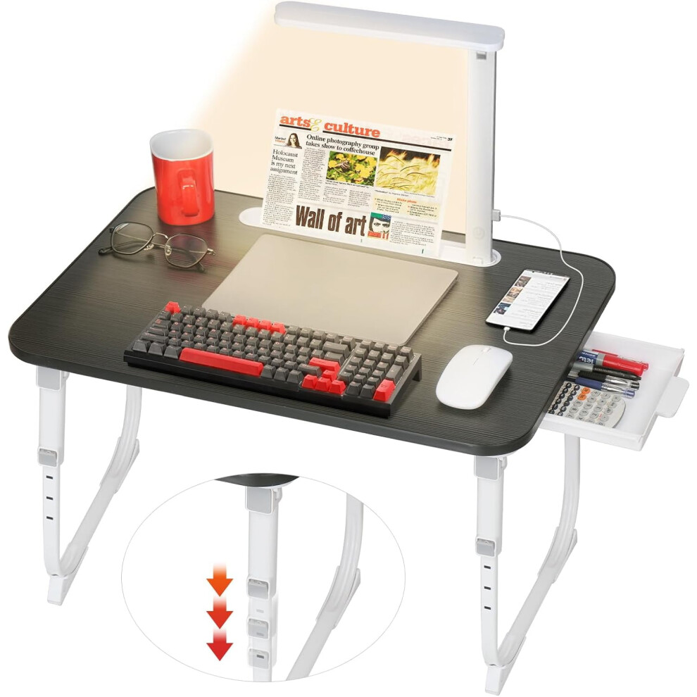 Laptop Desk for Bed Lap Desk, Bed Table with Foldable Legs Storage Drawer, Breakfast Tray Folding Laptop Stand for Sofa Couch Floor (Black)