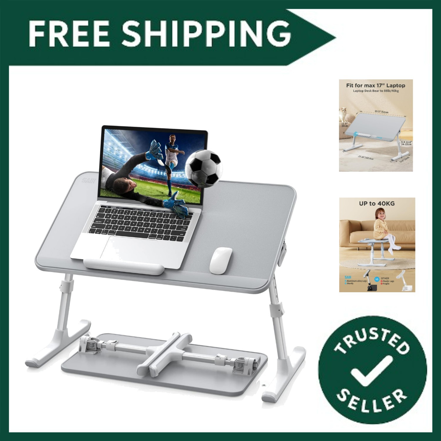 SAIJI 60*45cm Table lap for bed, Multi-purpose Premium Lapdesk, Height Angle adj