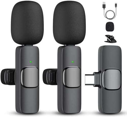2 Pack Professional Wireless Lavalier Microphone for iPhone 15(above) iPad Android, Mini Lapel Mics Plug-Play Clip on Lapel Mic for YouTube, Recording, Vlog, Facebook Live TikTok