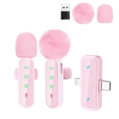 Wireless Mini Lavalier Lapel Microphone for iPhone iPad & Android Phone, 2 in 1 Lapel Mic for Video Recording- Clip on Dual Mics with Noise Reduction for Video YouTube Tiktok Podcast Vlogging (Pink)