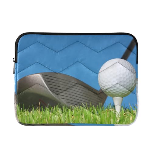 Zipper Laptop Messenger Bag, Case Sleeve Suitable for 13 in to 14 in Notebook Bag, Shoulder Strap Tablet Briefcase Print White Golf Ball Off A Steel Tee Green Blue Sky