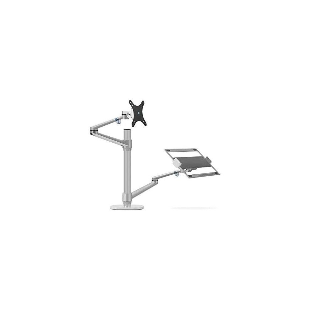 Thingy Club Dual Arm Monitor & Laptop Mount, Desk Mount Stand for up to 30 inch Computer Screen and 12-17 inch Laptop, Height Adjustable, Swivel at