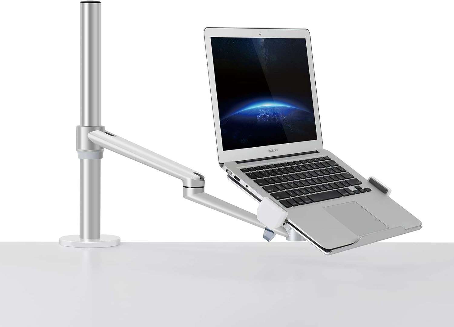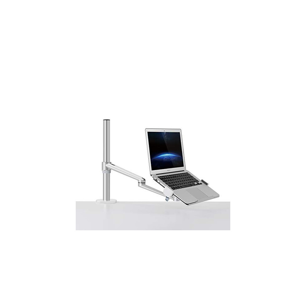 Thingy Club Single Arm Laptop Mount, Desk Mount Stand for 12-17 inch Laptop, Height Adjustable, Swivel at Any Angle (Single Arm Silver)