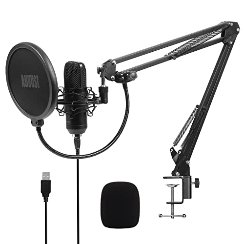 August REC100 USB Condenser Microphone with Boom Arm, Pop Filter & Shock Mount - Professional Cardioid Mic Kit for PC, Laptop, Gaming, Streaming, Podcasting, Recording, YouTube, TikTok, Discord, PS5