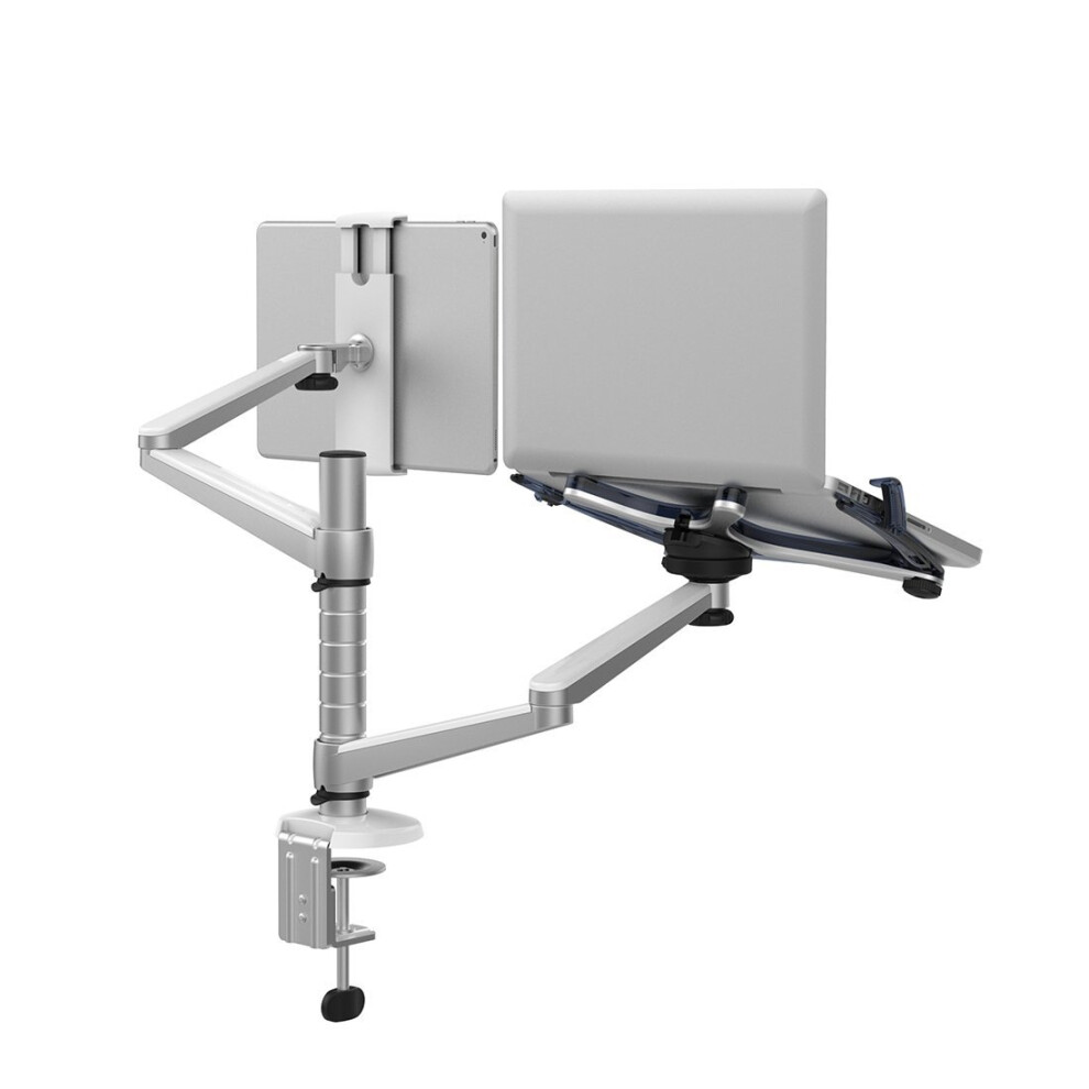 Adjustable Aluminium Universal Laptop Notebook & Tablet Stand Desk Mount Bracket Clamp Tilt Swivel Dual Arm Support Holder (Laptop & Tablet)