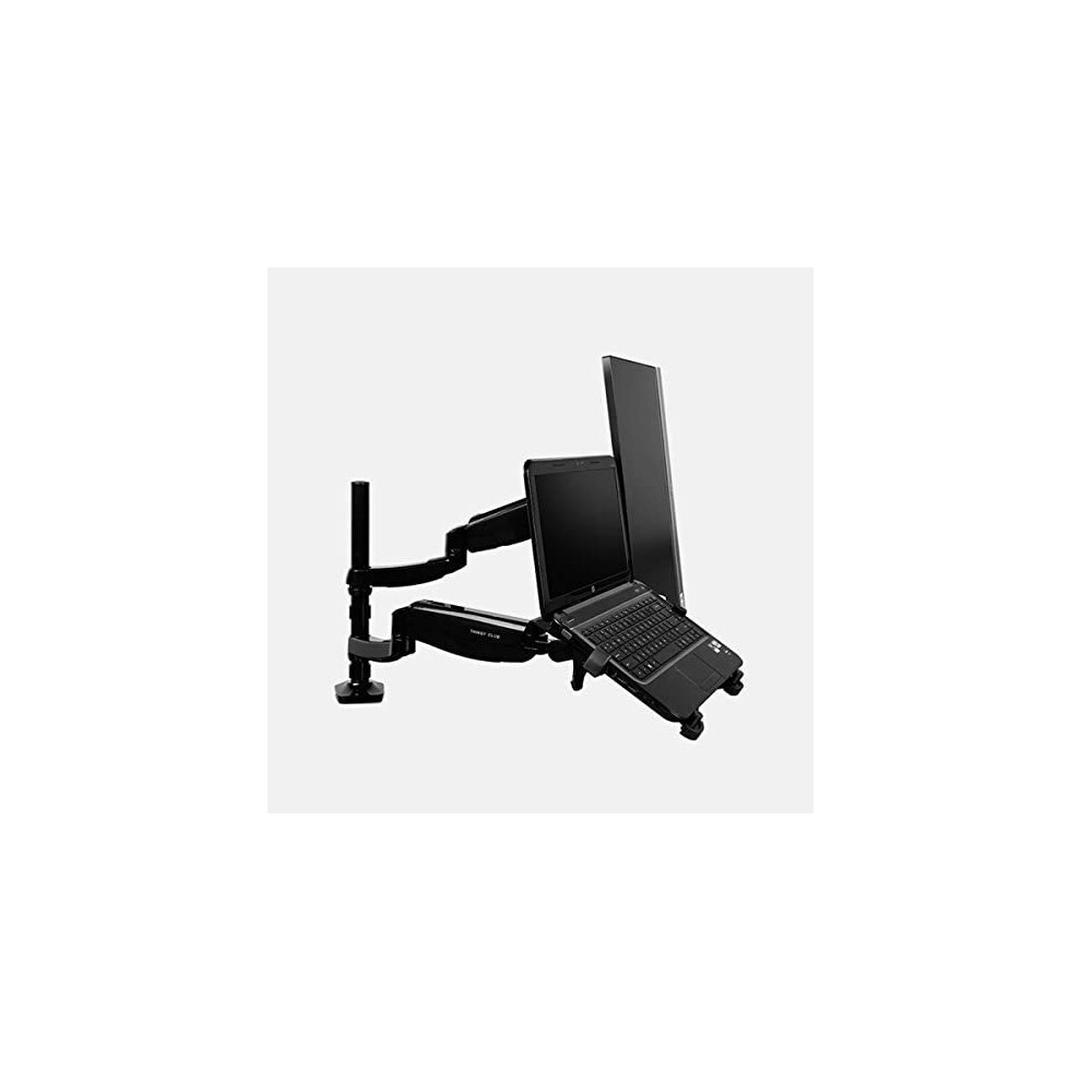 Thingy Club Dual Arm Laptop and Monitor Stand- Single Adjustable Gas Spring laptop Arm/Single Monitor Desk Mount Fits 17 to 27 inch(Black)