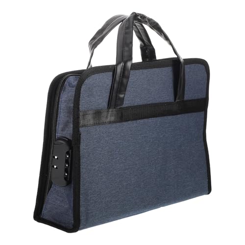 Abaodam Portable Oxford Document Bag Briefcase with Lock, Travel File Organizer for Business Men, Laptop Carrier with Handle for Office Meetings, Blue Waterproof Oxford Cloth