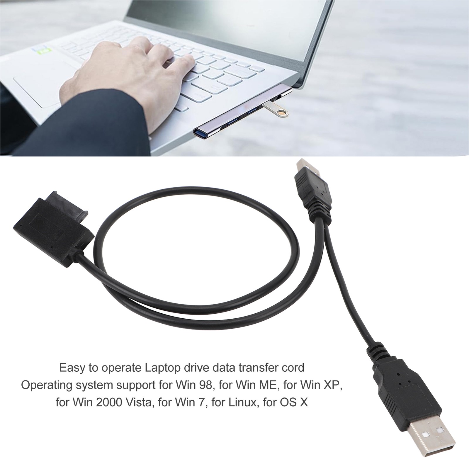 USB to 13Pin SATA Cable 480Mbps for Laptop CD/DVD Drive Hot Swap Ready
