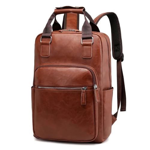 EGHFIXSD black work backpack leather bag man shoulder bags Waterproof male backpack 15.6 inch laptop computer bag school backpack,Light Brown,29 * 11 * 43CM