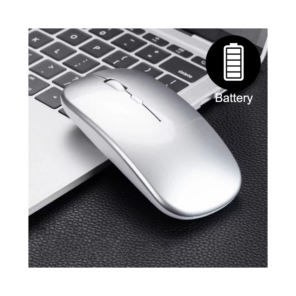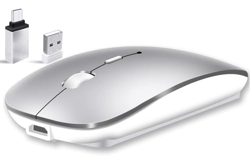 Qxvnm Wireless Mouse Bluetooth, (USB 2.4 GHz + Bluetooth 5.2 + USB-C Adapter) Rechargeable Wireless Mouse Compatible with Macbook Pro/Air/Laptop/Chromebook/Computer/Android tablet(Silver)
