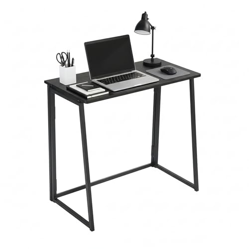 FurnitureR Folding Desk 80CM Laptop Computer Table Study Writing Desk for Adults Teens, Simple Industrial Foldable Student Study Table for Home Office Study Room, No Assembly, Black