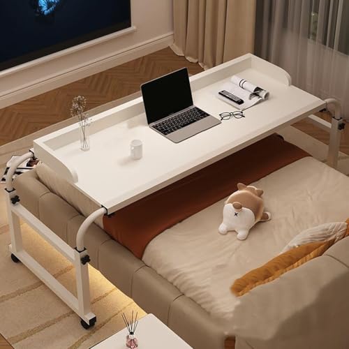 Over Bed Table Computer Laptop Table, Over Bed Table Wheeled, Mobile Adjustable Over Bed with Wheels, Portable Convenient Reading Writing Desk for Working Dinning