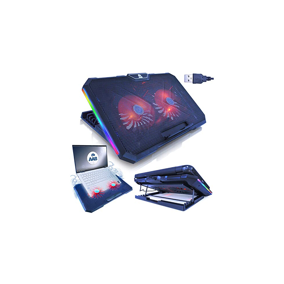 Laptop Cooling Pad With RGB Lighting, Dual USB Powered, Adjustable Height Notebook Cooling Tray