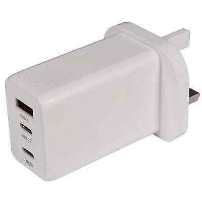 Fast Charging USB Wall Charger Plug Socket Laptop Phones Earphones 65W White