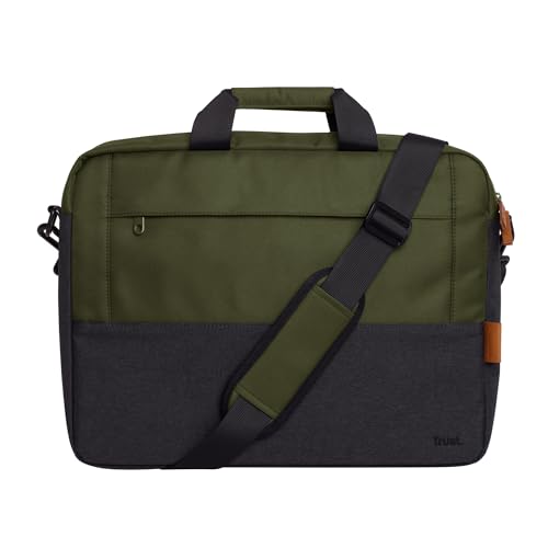 Trust Lisboa Laptop Bag Case 16 inch, Travel Bag with Trolley Strap, Made from Recycled Plastic, Business Work Bag, Shoulder Bag for Men, Women, College, MacBook, HP, Dell, Asus, Lenovo - Green