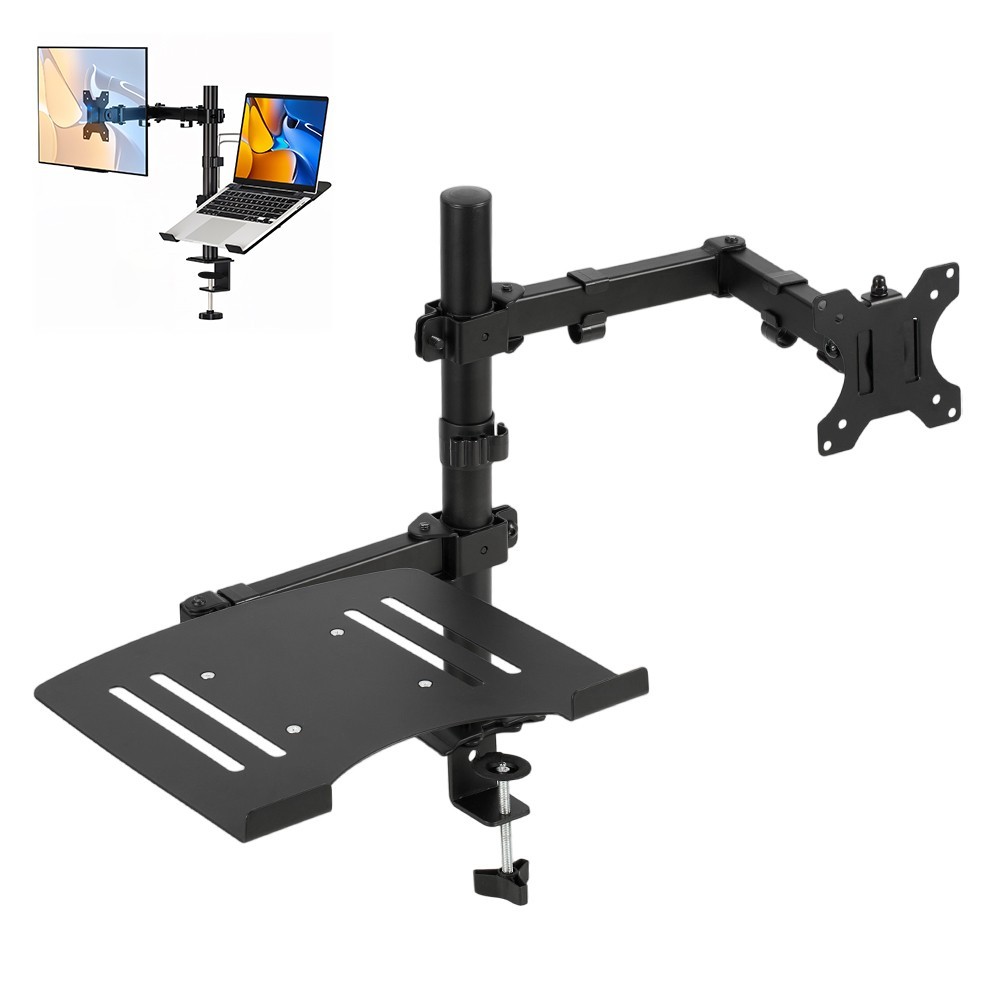 DIHL Monitor Stand Arm 13-27" with Laptop Shelf Mount Clamp