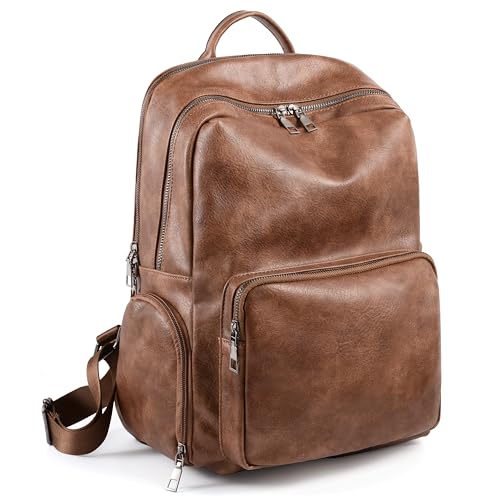 UTO Laptop Backpack Womens Rucksack for Men Travel Shoulder Bag Foldable Shoe Compartment Pocket Brown