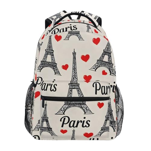 Reiacy Backpack School Bag, 15.6" Laptop Rucksack, Womens Kids Eiffel Tower Paris Hearts Schoolbag, Lightweight Casual Daypack for Girls Boys Travel & Business