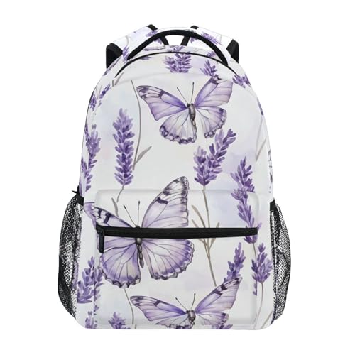 Reiacy Backpack School Bag, 15.6" Laptop Rucksack, Womens Kids Butterfly Lavender Schoolbag, Lightweight Casual Daypack for Girls Boys Travel & Business