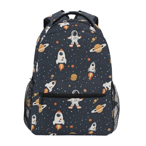 Reiacy Backpack School Bag, 15.6" Laptop Rucksack, Womens Kids Little rockets planets Schoolbag, Lightweight Casual Daypack for Girls Boys Travel & Business