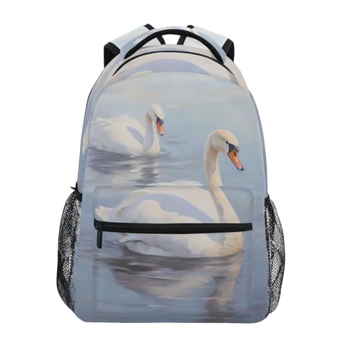 Reiacy Backpack School Bag, 15.6" Laptop Rucksack, Womens Kids swan swim Schoolbag, Lightweight Casual Daypack for Girls Boys Travel & Business