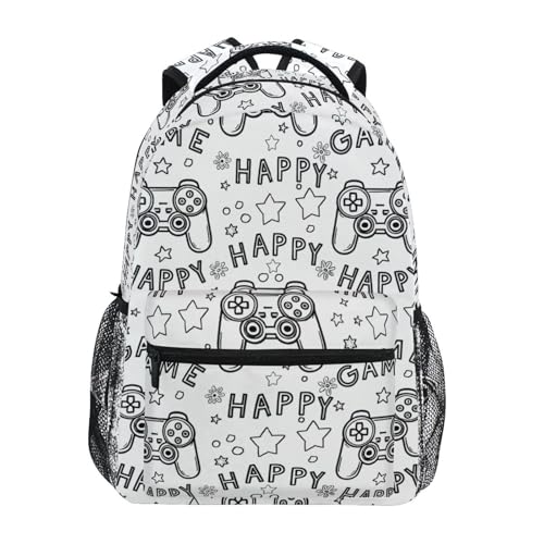Reiacy Backpack School Bag, 15.6" Laptop Rucksack, Womens Kids Gamepad Happy Play Schoolbag, Lightweight Casual Daypack for Girls Boys Travel & Business
