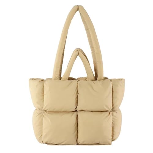 Puffer Tote Bag for Women, Large Quilted Puffy Handbag, Lightweight Satchel Purse, Large Tote Bag Shoulder Bag, Tote Bag with Laptop Compartment for Work Travel Gym Shop (Khaki)