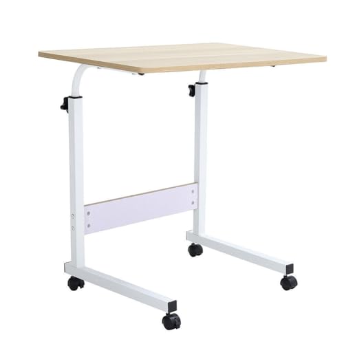 FENGSHENG-SHOP Portable Table, Mobile Table 40x60-(68-88) cm Height Adjustable Laptop Table Workstation Laptop Overbed Multi Table with Metal Frame & Rolling Castors (White Maple)