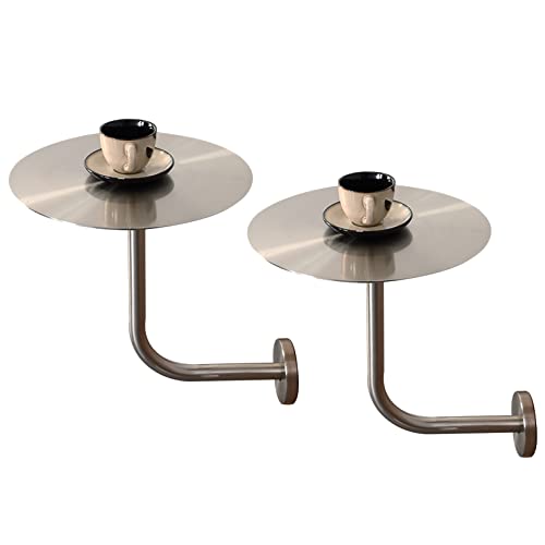 Baodiale Wall-mounted Small Coffee Tables Round L Shaped End Table with Stainless Steel Desktop Sofa Snack Side for Dessert Shop Laptop Cafe Living Room Small Space