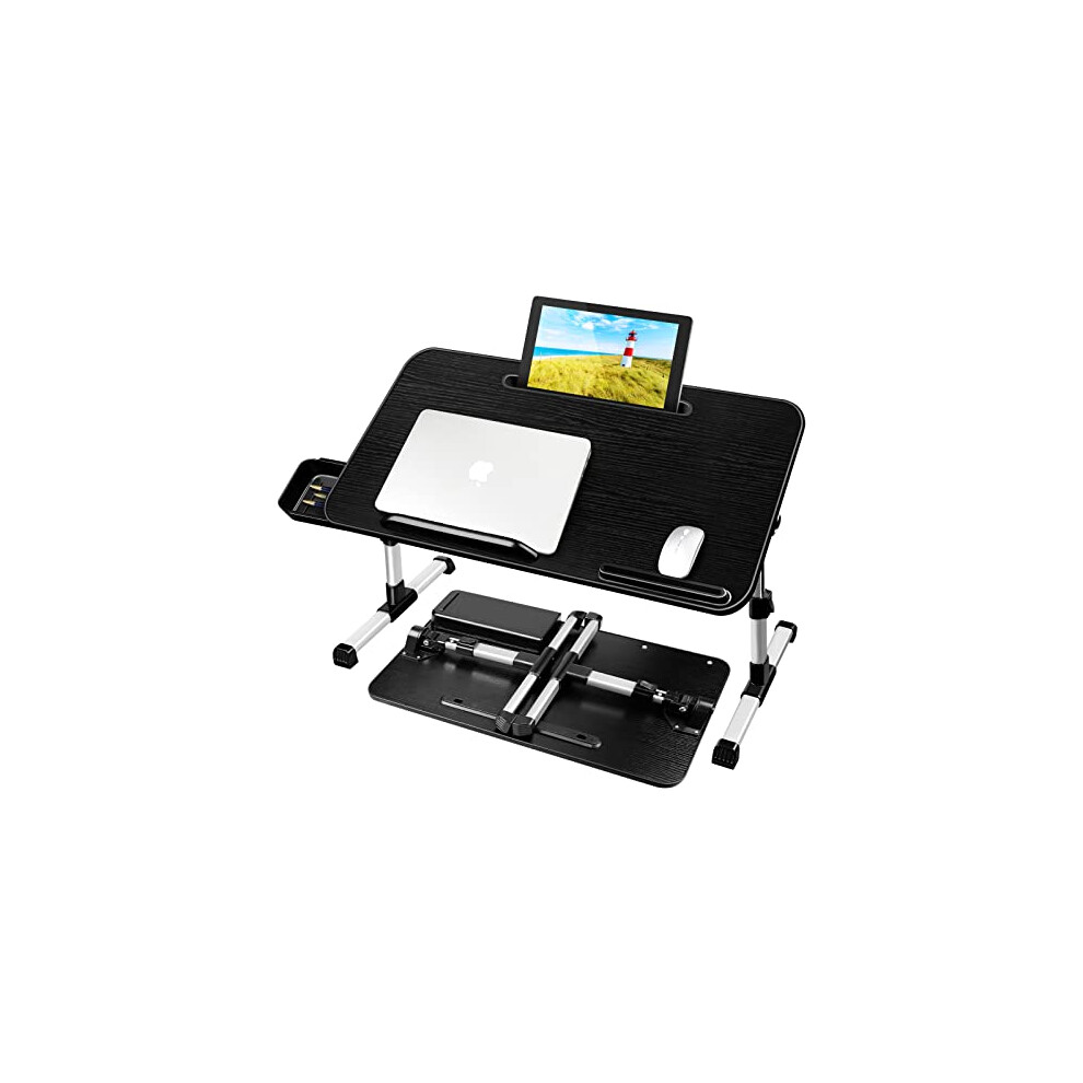 HETTHI Laptop Bed Tray Table Adjustable Sturdy Laptop Stand for Bed with Premium Materials Folding Portable Lap Desk with Drawer for Writing Workin