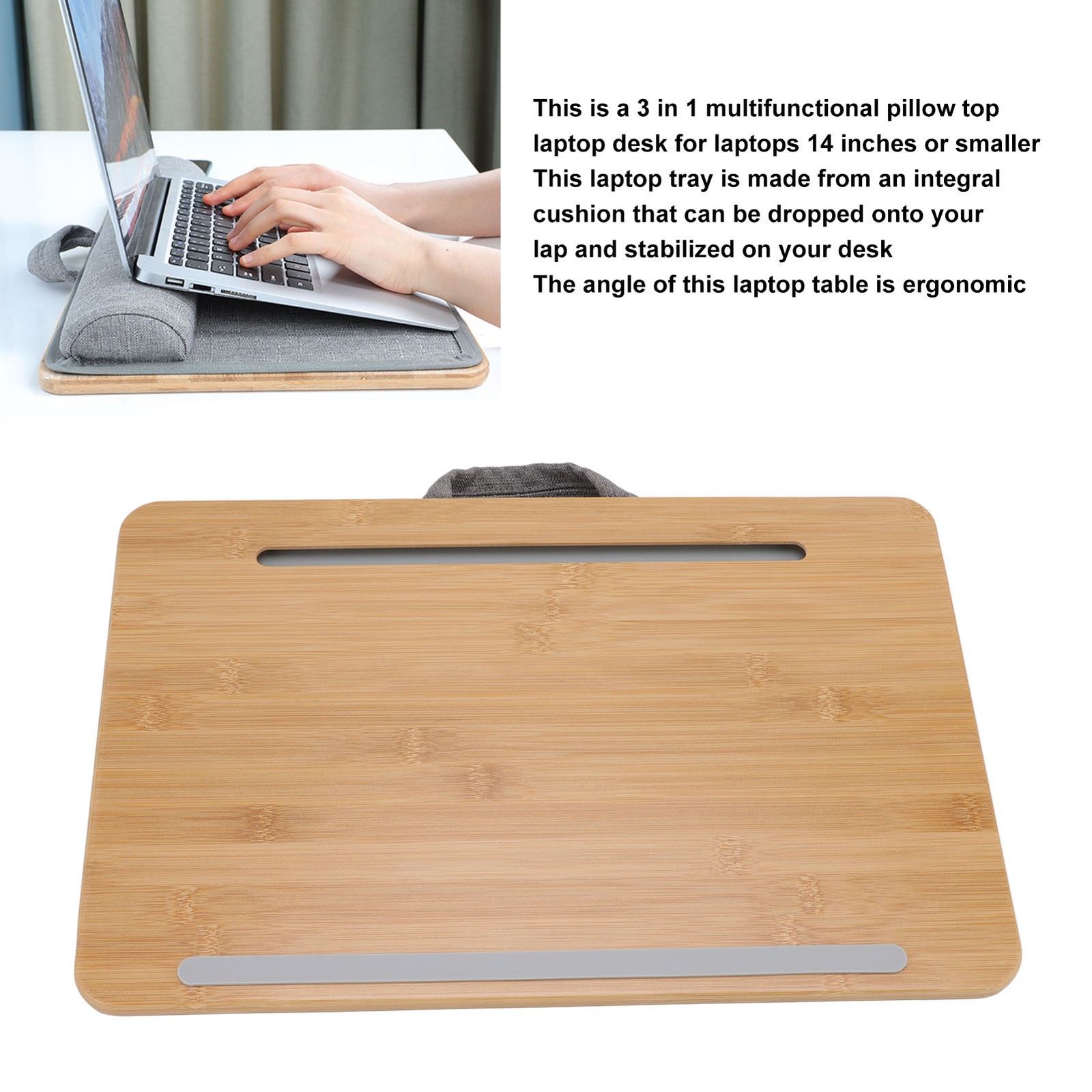 PEPE - Laptop Stand for Bed and Sofa, Bamboo Lap Tray, Soft Laptop Tray with Cushion, Lapdesk for Laptop, Laptop Cushion Tray for Lap, Padded Laptop