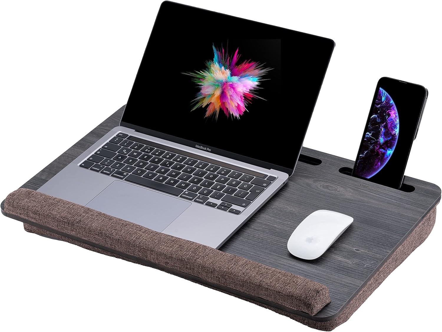 Vigo Wood Laptop Tray for Bed, Lap Desk for Laptop Stand for Bed, Tray with Cushion, Portable lap tray for Home Office Fits up to 16'' Tablet and Phone Holder