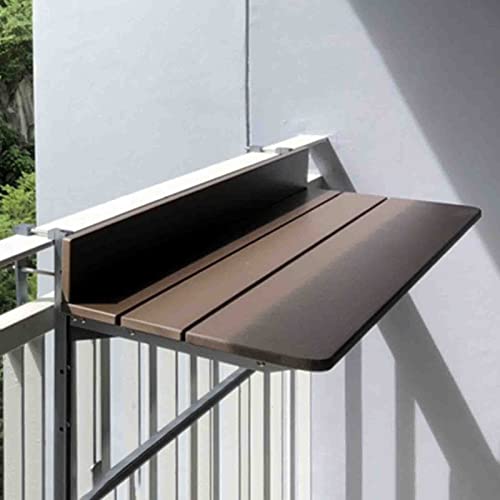 XAoSCd Hanging Adjustable Deck Table - Outdoor Balcony Railing Bar Table, Folding Dining Table Laptop Tables Adjustable Deck Hanging Half Table 60-120Cm Wall Mounted Fold Down Table (Brown 60 * 27Cm)