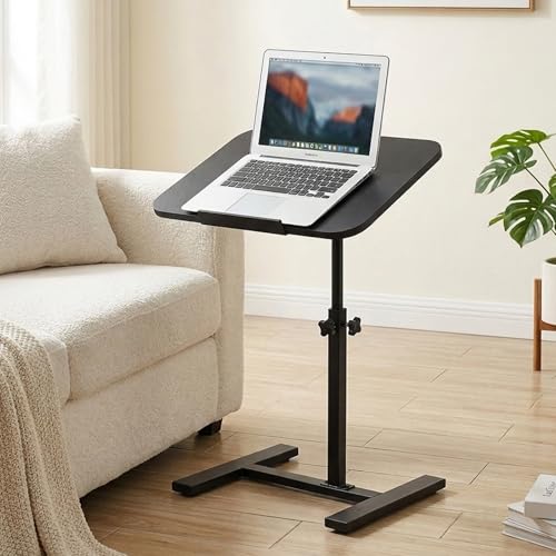 XUDREZ Adjustable C Shaped Side Table, Top Tilting Laptop Stand Tray Tables, End Table for Living Room Bedroom Sofa Bathtub Bedside Nursing(Black Color)