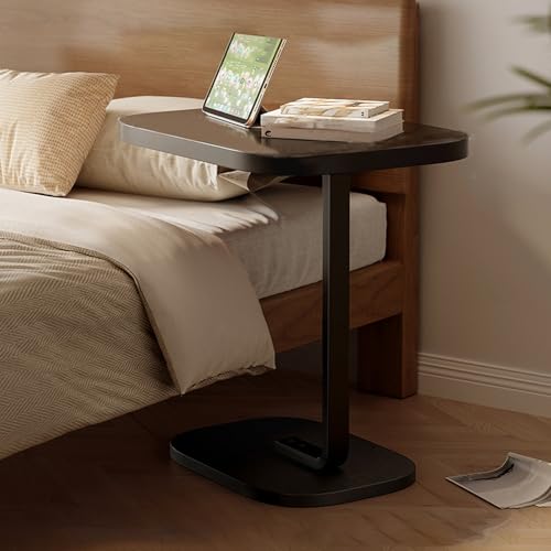 C-Shaped Sofa Side Table Modern Small Couch Coffee End Tables Laptop Desk For Bedroom Bedside Office Living Room, Space-Saving(Black,50 * 30 * 60cm)