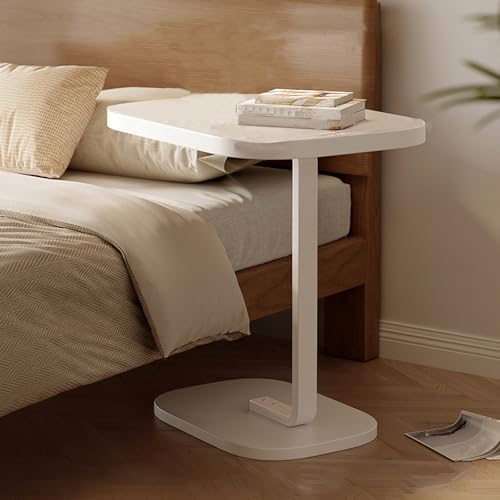 C-Shaped Sofa Side Table Modern Small Couch Coffee End Tables Laptop Desk For Bedroom Bedside Office Living Room, Space-Saving(White,50 * 40 * 60cm)