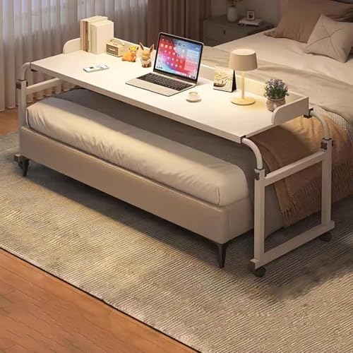 LIJBDDM Overbed Desk Adjustable 115-210cm,Overbed Table with Wheels Standing Workstation Desk Laptop Cart, Bed Tables Adjust Height 65-95cm for Twin/Full/Queen/King Size Bed Frame(Color:White)