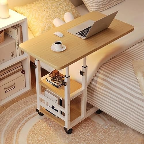 Adjustable Table Mobile Tables Workstation Laptop Overbed Multi Table 40x60-(67-80) cm Laptop Tables with Metal Frame & Rolling Castors (Light Wood Color)