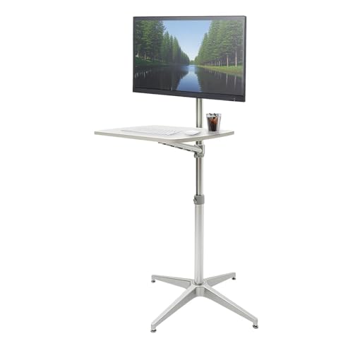 Yicorgard Portable Mobile Desk,Movable PC Workstation With Lockable Wheels,Detachable LAptop Tray Compatible with 17"-27" Monitor or 12"-17" Laptop,Height Adjustable Laptop Trolley Silver