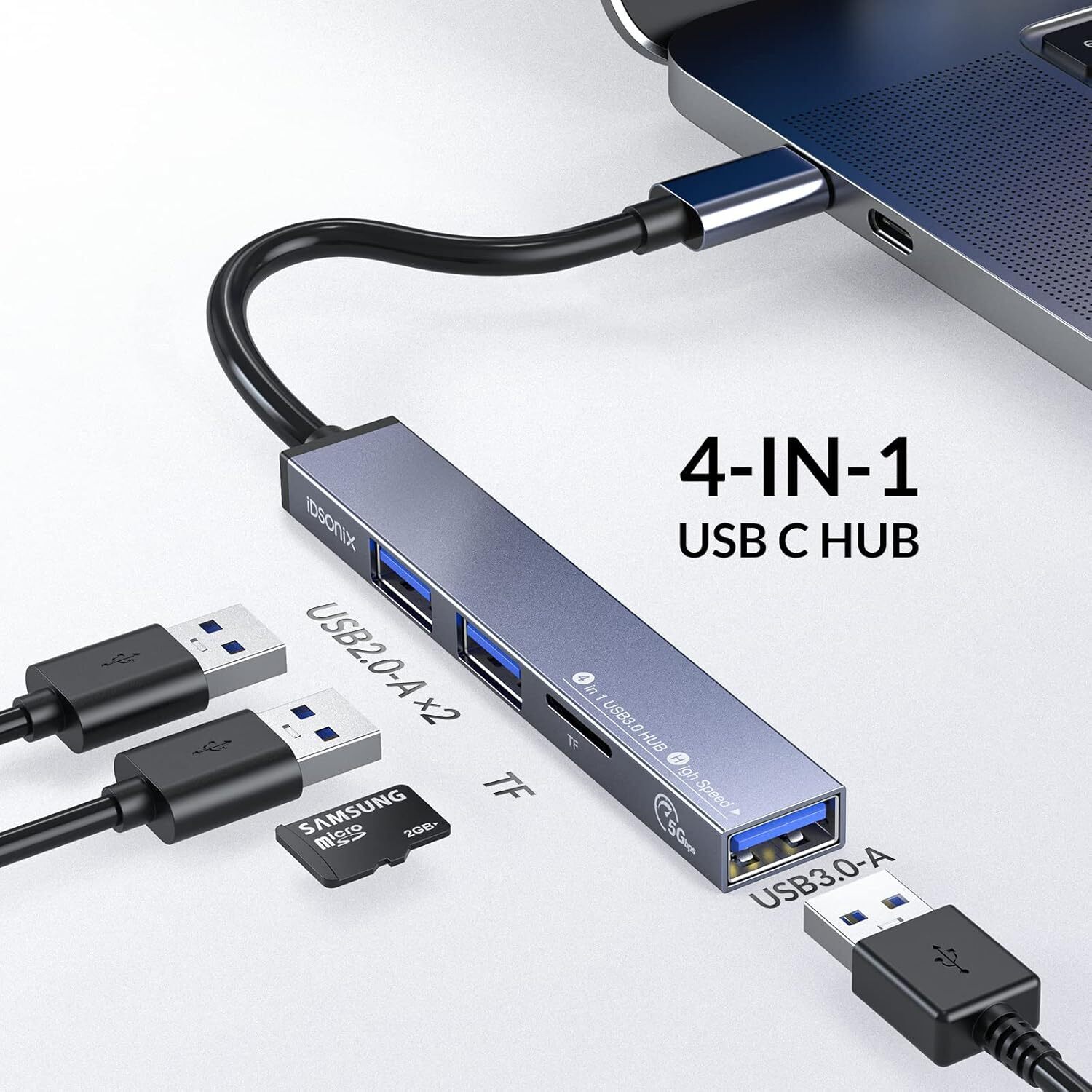 USB 3.0 Hub Dock 5Gbps Aluminum Universal Splitter With TF Card Slot Compatible With Laptop Desktop(2 USB 1 TYPE C SD TF)