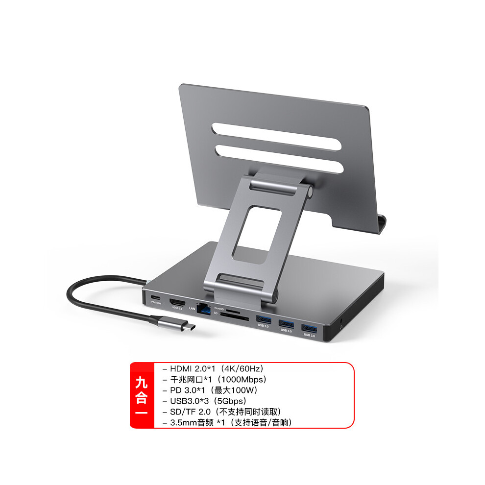 (9 in 1) Docking Station Laptop Stand 4K 60HZ USB 3.0 Hub 5Gbps SD TF Slot (8 in 1)