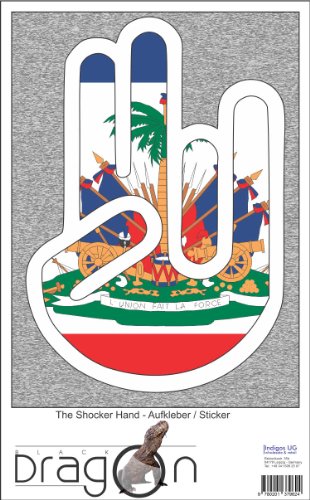 INDIGOS UG The Shocker Hand Laptop Sticker/Laptop Skin/Decal Sticker 210 x 144 mm White Outline with Flag Haiti-Haiti
