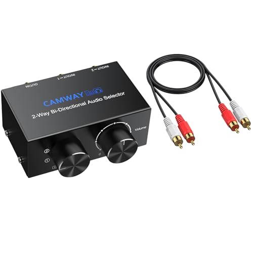 CAMWAY 1X2/2X1 RCA + 3.5mm Bi-Directional Audio Switch, AUX & RCA Stereo Switch Selector for PC, Laptop, Smartphone, Headphones, Speakers, Amplifiers, with OFF Button