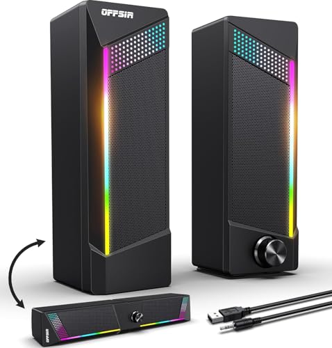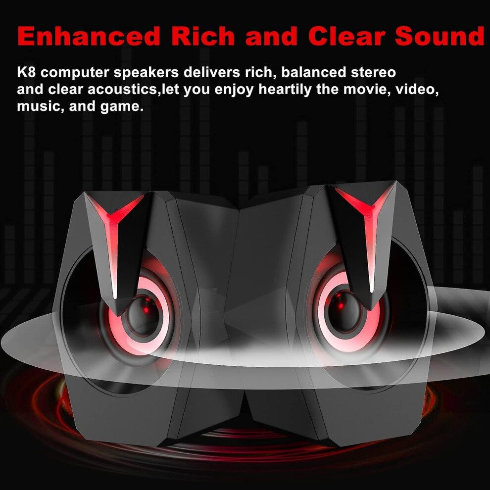 USB Computer Speakers for Desktop PC Laptop Speakers with Dynamic RGB Light, Ultra-Clear Sound, Loud Volume, Deep
