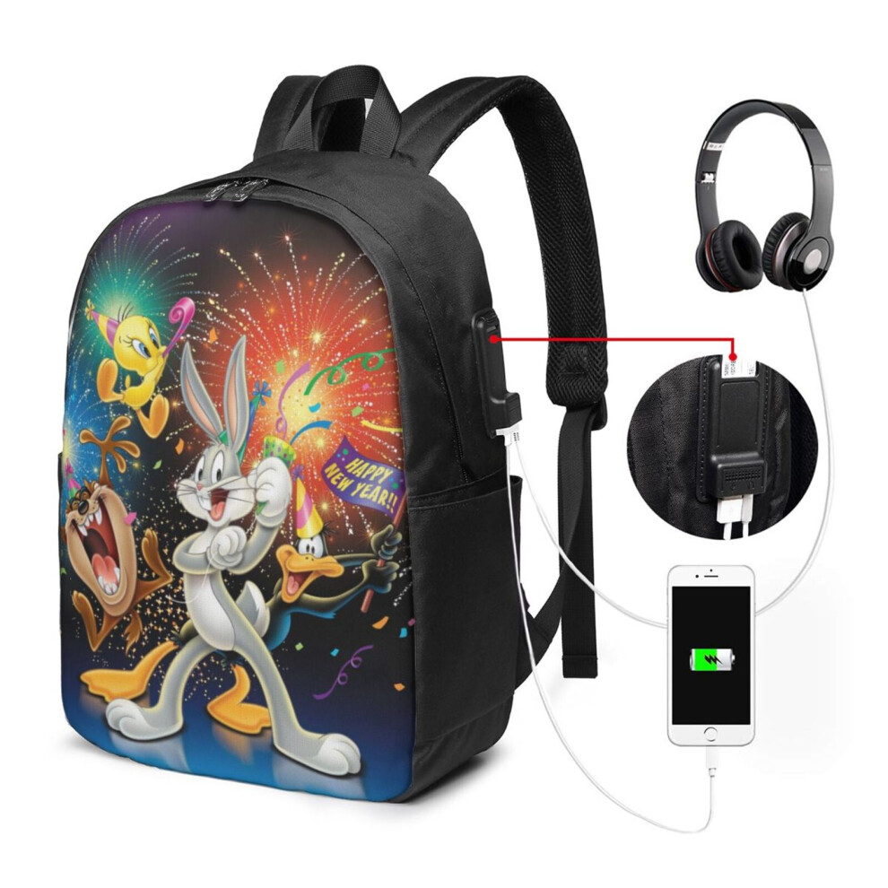 Looney Tunes 17" Laptop Backpack, Water Resistant & Anti-Theft with USB Port, Compatible with Most Laptops, for Work, College, Travel