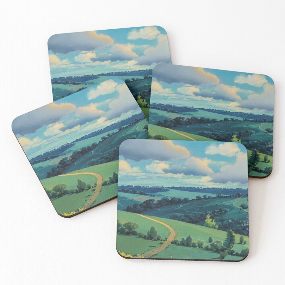 Leather Coasters Laputa castle in the sky Set of 4 / 4 x 4 inch